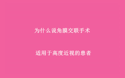 为什么说角膜交联手术 适用于高度近视的患者,近来常谈的角膜交联技术,可以用在圆锥角膜的治疗、角膜屈光术后的角膜扩张以及用来联合屈光手术加固健康角膜。