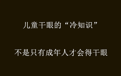 儿童干眼的“冷知识” 不是只有成年人才会得干眼,你是否在日常生活中出现看东西模糊不清,怕光疼痛,有灼热感和异物感,那么你有可能得了干眼症。