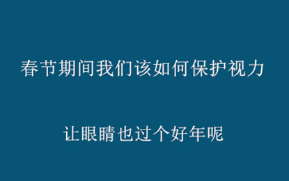 春节期间我们该如何保护视力 让眼睛也过个好年呢,春节将至,是不是又要忙着熬夜打牌、追剧、玩电脑,加之节日期间饮食营养不均衡、休息不足,这些都会增加眼睛的负荷。