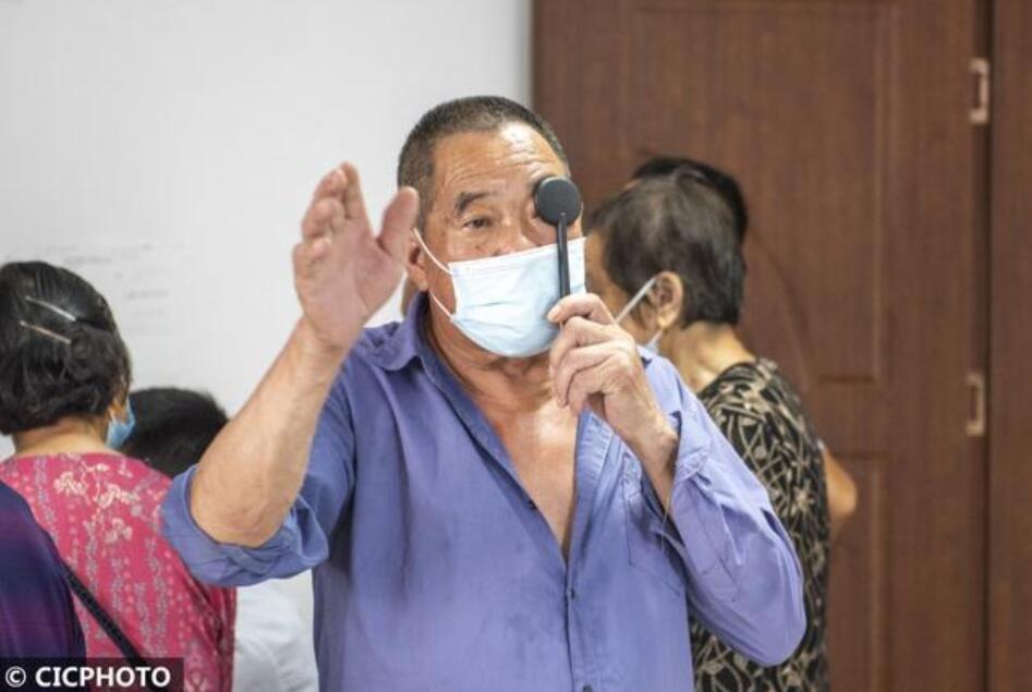 2022年7月6日,在江西省吉安市吉水县人民医院,接受白内障复明手术的患者进行术后视力测试。CICPHOTO/谢东 摄