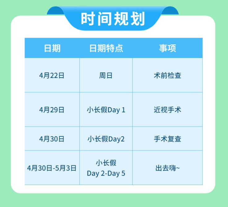 术前检查后各项条件良好,可正常预约手术。手术前1~3天须使用抗生素眼药水滴满12次,做好预防性消炎工作,同时滋润双眼。