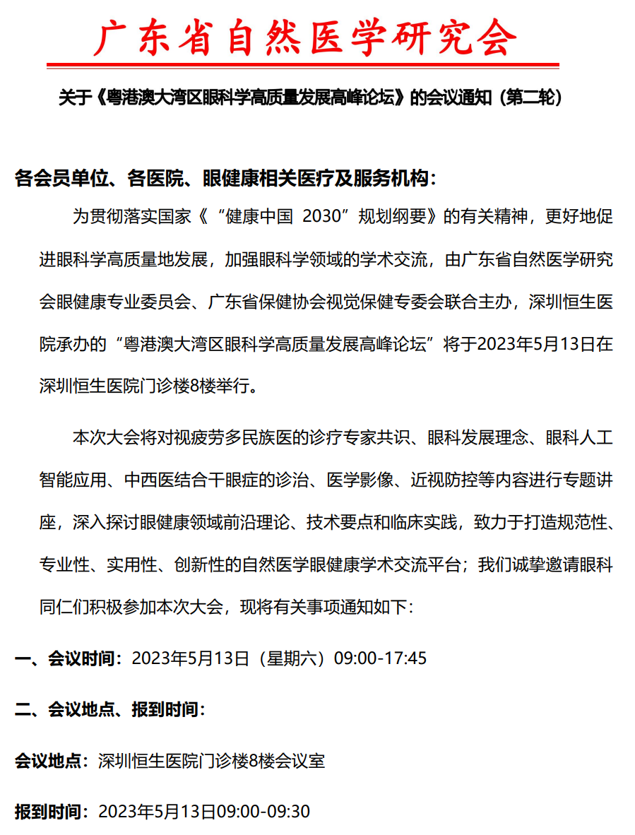 粤港澳大湾区眼科学高质量发展高峰论坛