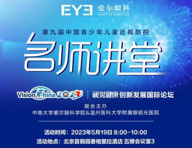 5月19日,由中南大学爱尔眼科学院与温州医科大学附属眼视光医院联合主办的“第九届中国青少年儿童近视防控名师讲堂”即将在北京首钢园香格里拉酒店闪耀开讲。届时,爱尔眼科近视防控博士宣讲团专家与多名来自国内眼视光领域的资深专家将围绕当下家长关心的近视管理问题现场答疑解惑,敬请关注!
