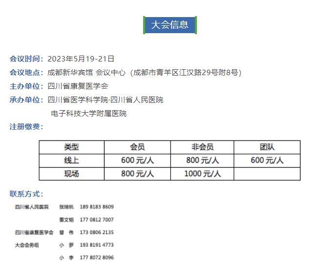 由四川省康复医学会主办,四川省医学科学院·四川省人民医院、电子科技大学附属医院承办的第十八届天府眼科学术交流会四川省康复医学会眼科年会定于2023年5月19日-21日在成都市新华宾馆隆重召开。