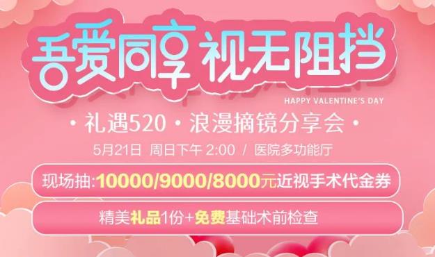 人生嘈杂鼎沸,爱意赤诚热烈,限定节日,特定浪漫,真诚才是永远的必杀技,第一次跟大家过520,小编给你们安排上了超直接的福利方式。深圳华厦礼遇520浪漫摘镜分享会,报名参加活动可享受福利,近视手术优惠4000-7000元,想摘镜的朋友就抓紧报名吧!