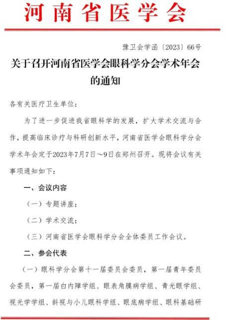 河南省医学会眼科学分会学术年会