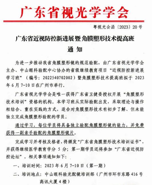 角膜塑形技术提高班开班通知。开展本次角膜塑形技术培训,是为了进一步推动我省角膜塑形镜的规范验配。