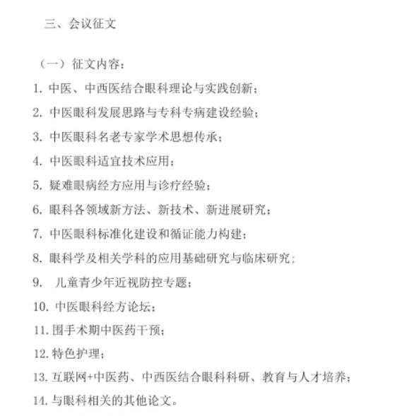中华中医药学会眼科分会第二十二次学术年会征文通知