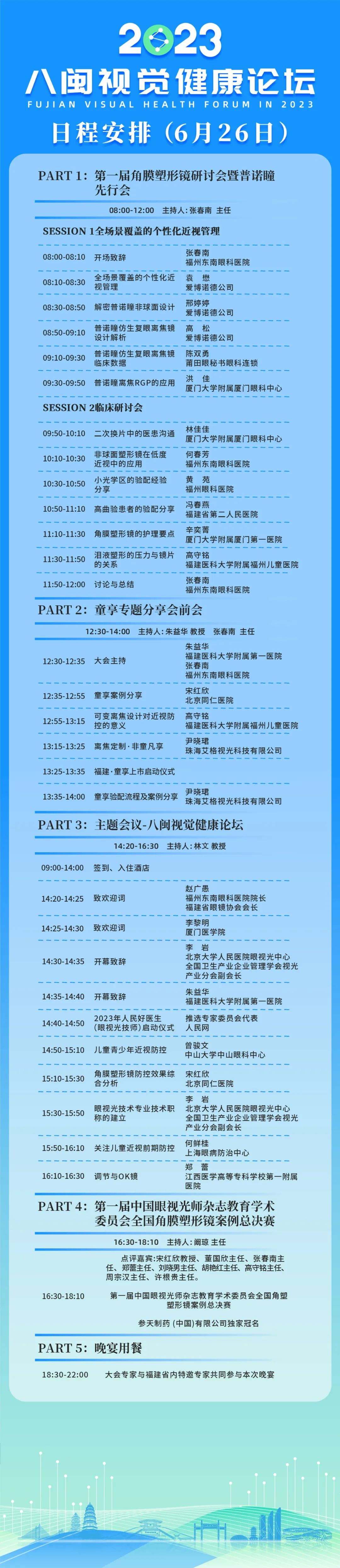 为进一步交流最新的近视防控技术、经验和进展,迎接日益增长的视觉健康管理挑战,推动地区近视防控和视觉健康事业的发展,2023年八闽视觉健康论坛”将于2023年6月26日至27日在福州市举行。