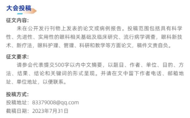 设置了白内障、角膜屈光、玻璃体视网膜手术等培训课程,为军内外眼科同仁提供一次绝好的学习机会和学术交流平台。我们诚挚邀请您参加本次会议,共同促进眼科事业的发展!