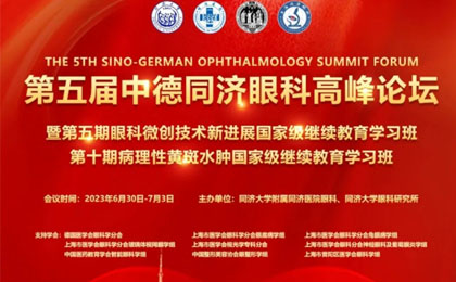 2023年第五届中德同济眼科高峰论坛暨第五期眼科微创技术新进展国家级继续教育学习班、第十期病理性黄斑水肿国家级继续教育学习班将于2023年6月30号到7月3号在同济大学附属同济医院线上线下同步举行。本次国际论坛获得德国医学会眼科学分会、上海市医学会眼科学分会眼底病学组、上海市医学会眼科学分会角膜病学组、上海市医学会眼科学分会玻璃体视网膜学组、上海市医学会视光学专科分会、上海市医学会眼科分会神经眼科及葡萄膜炎学组、中国医药教育学会智能眼科学组、中国整形美容协会眼整形学组、上海市普陀区医学会眼科学组支持。