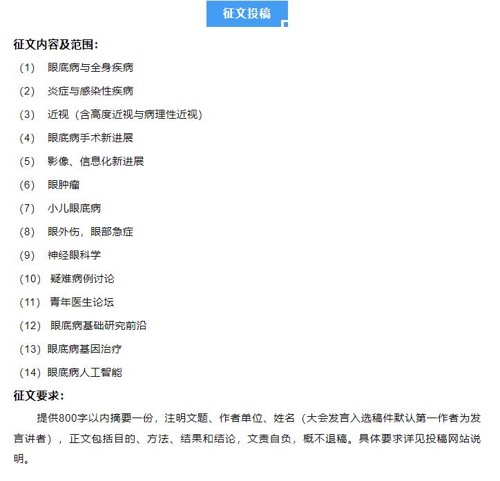一年一度的中国眼底病论坛是国内眼底病领域规模最大、学术水平最高的学术会议,也是眼底病乃至眼科学界同仁互相交流学习的优秀学术平台。我们坚持开放、创新的理念,每年邀请国际相关学术领域的顶级权威学者参会作特邀报告,国内的眼底病及相关领域的杰出专家更是年年汇聚一堂。我们积极聚焦领域内新兴的学术热点,每年都开辟新专场的学术研讨报告。同时我们热情邀请青年医生和研究人员积极向大会投稿,经学术委员会遴选,能够在大会上展示个人及团队的学术风采。在会议上,我们还将同时举办规模盛大的医疗设备器械展览,向大家展示各类先进眼科设备器械,并提供实践操作培训机会。
