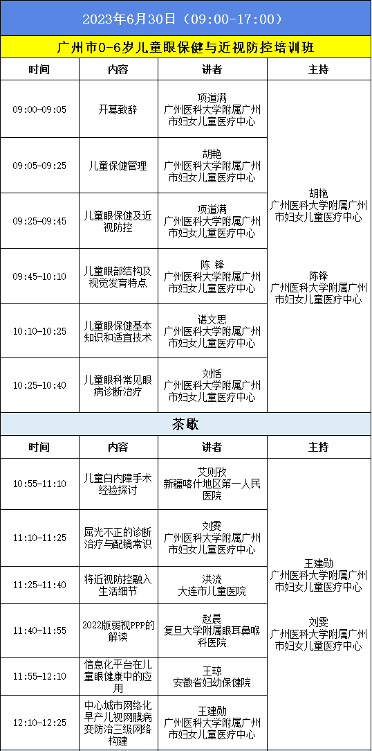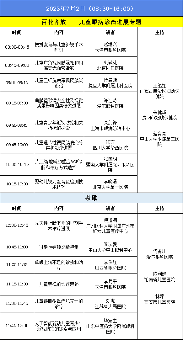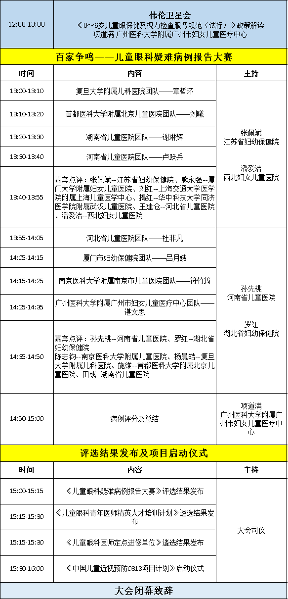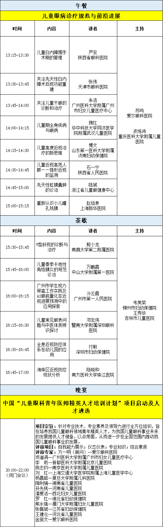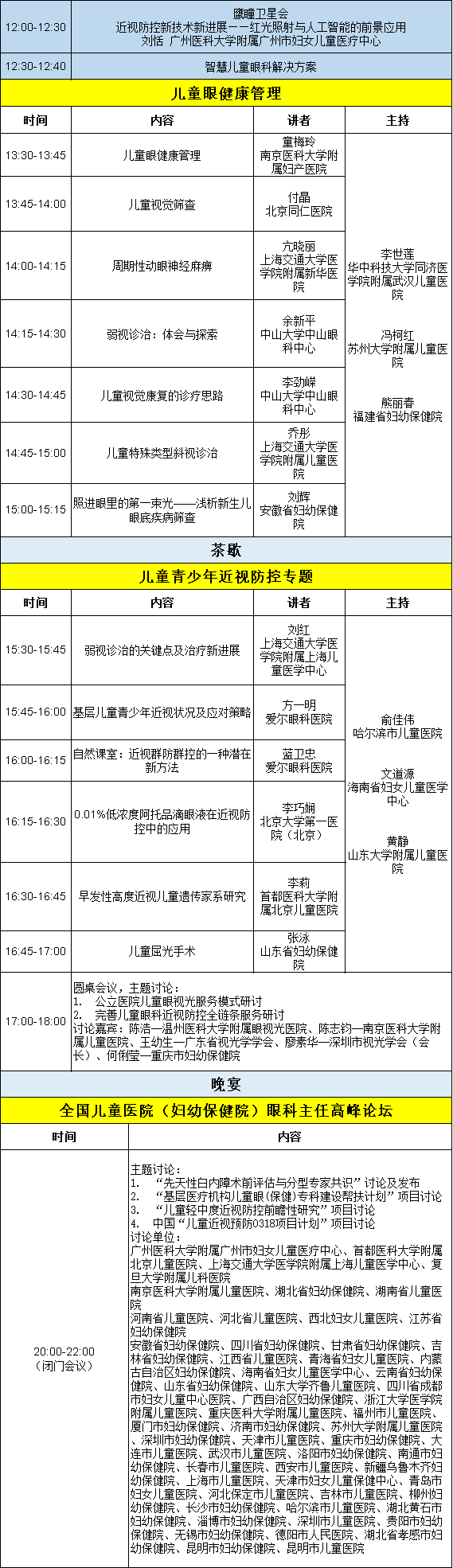 天性白内障术前评估与分型专家共识讨论、中国“儿童近视预防0318项目计划”。期待全国儿童近视防控与儿童眼健康相关工作者相聚于花城!