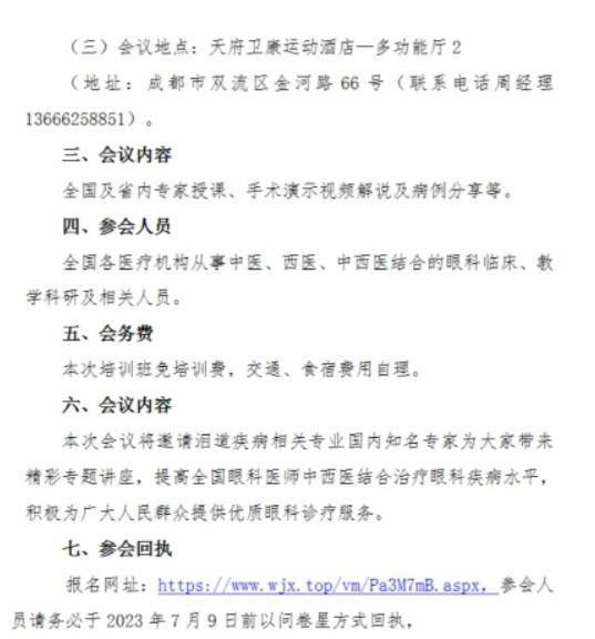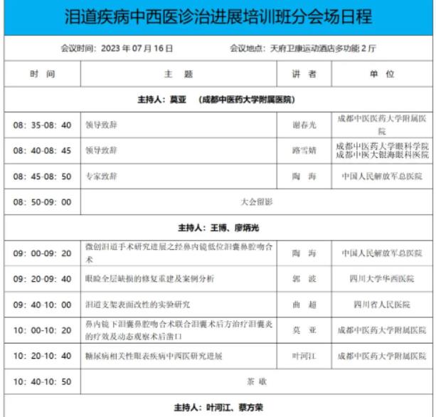 由中国民族卫生协会、中华医学会杂志社、四川省科协等单位指导,四川省医学传播学会、四川省仁心公益慈善促进会主办,多家单位联合主办的第2届“人民医学传播大会”将于2023年7月13日-16日在成都召开,大会主题为“人民医学传播的理论与实践”。泪道疾病是眼科的常见病和多发病,多有溢泪、流脓等症状,会给患者造成身体和心理上的不适。其中,泪囊炎是内眼手术的禁忌证,泪囊为眼部的感染灶可向眼球及眶内蔓延,给患者造成严重后果。随着生活水平的提高,人们越来越重视该类病的治疗,因此临床效果和安全性凸显重要。中西医结合治疗泪道疾病具有良好疗效,为进一步加强学术交流,提高全国中西医结合治疗泪道疾病水平,更好为西南乃至全国人民群众提供优质医疗服务,在第2届“人民医学传播大会”会议期间,将于2023年7月16日在四川省双流区川投国际酒店/天府卫康运动酒店(多功能厅2)举办由成都中医药大学附属医院眼科、成都中医药大学眼科学院等联合主办的第2届“人民医学传播大会”暨《泪道疾病中西医治疗进展学习班》(省级中医药继续教育项目(项目编号:[川]23-25-02-10-293)),本次培训班授予省级继续教育I类学分2分,并颁发学习证书。