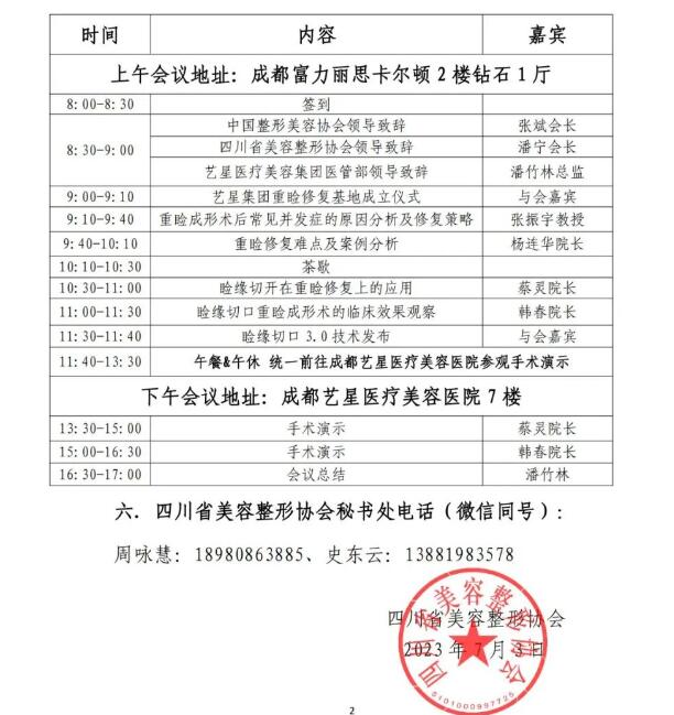 由中国整形美容协会行业发展与监督自律委员会主办,四川省美容整形协会、四川省美容整形协会眼整形分会、艺星医疗美容集团学术委员会协办,成都艺星医疗美容医院承办的“蓉城论刀点眸未来”2023重睑修复技术专家论坛将于7月9日举行。