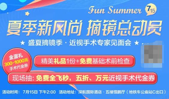 深圳华厦眼科医院将于7月15日在深航国际举办夏季新风尚摘镜总动员活动。