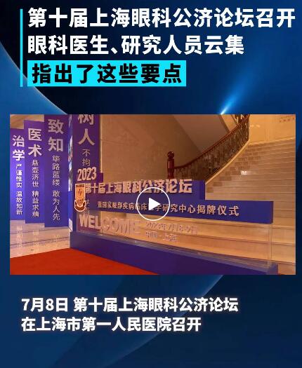 7月8日,第十届上海眼科公济论坛举行。期间,上海市第一人民医院眼科中心、国家眼部疾病临床医学研究中心揭牌。此次论坛为广大眼科医护工作者和研究人员提供了交流和学习的平台。