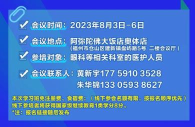 眼内镜微创外科新进展学习班暨第二届闽江泪道眼眶眼整形高峰论坛8月启幕