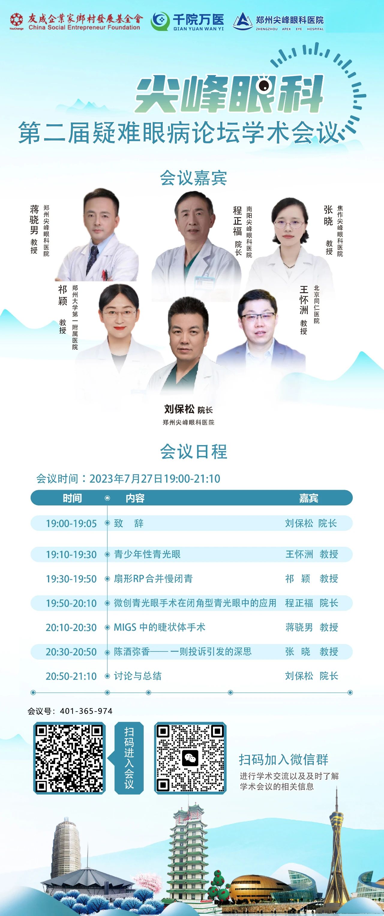 友成千院万医健康公益项目团队为发展我国眼科事业,为继续发展我国眼科事业,推动眼科诊疗技术规范化,积极响应国家十四五眼健康计划,特别推出“尖峰眼科疑难眼病论坛”系列会议。
