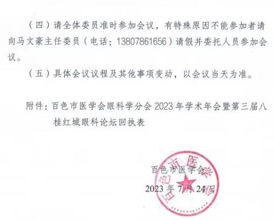 百色市医学会眼科学分会2023年学术年会暨第三届八桂红城眼科论坛第一轮通知