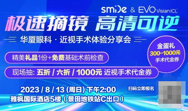近视手术优惠5000-8000元,手术方式不同,优惠金额不同,具体可报名进行咨询。