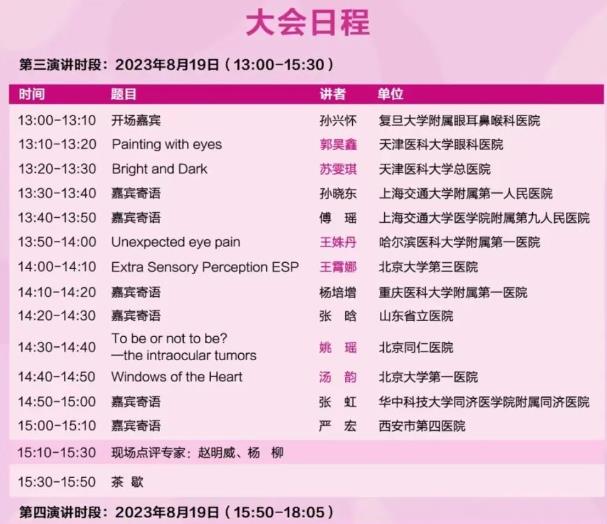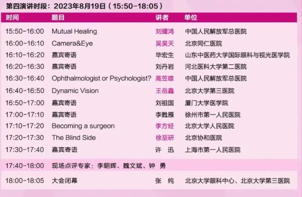 由北京大学眼科中心发起的第四届EYE TALK计划于2023年8月19日上午在北京长富宫饭店召开,届时有十余位年轻眼科医师以英文演讲形式分享各自对医学、人文、世界观的体会。今年我们很荣幸地邀请到清华大学黄天荫教授做主旨TED演讲。