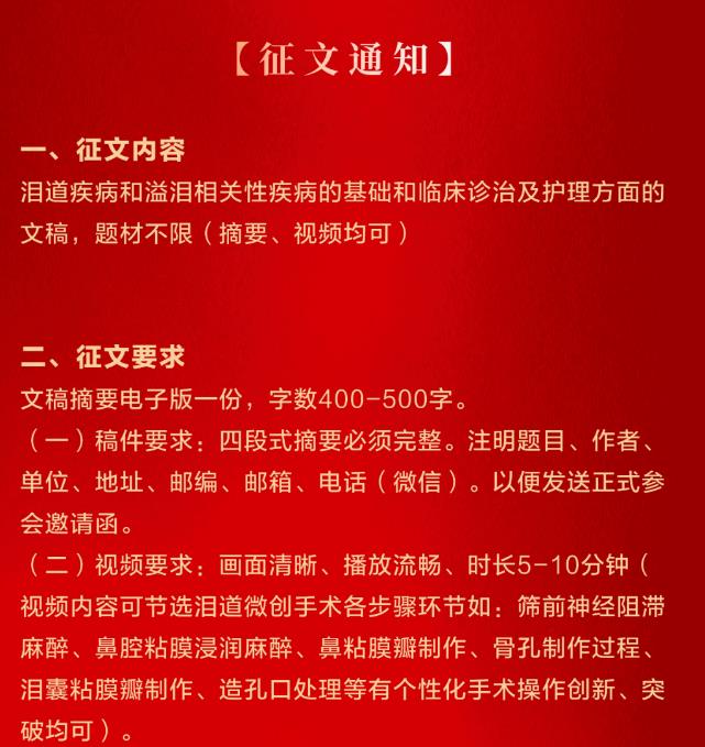 征文通知 第十三届全国泪道微创手术学习班征文啦