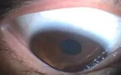 4、瘢痕期:角膜急性角膜水肿、混浊,消退后基质层残留瘢痕。