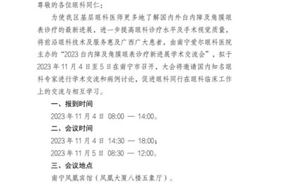 2023白内障及角膜眼表诊疗新进展学术交流会的邀请函。本次交流会是为了能进一步提高眼科诊疗水平,为广大患者服务。