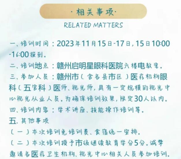 为了促进我市眼视光学的发展,提升基层医生、视光从业人员的小儿眼科基础水平及视光专业技术水平,我院将于11月15-17日在赣州举办“第三届启明星小儿眼科及视光培训班”。诚挚欢迎各位眼视光同仁共同学习交流!