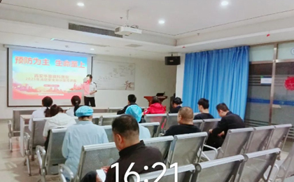 其次在医院门口及一楼通道制作并悬挂了学习《陕西省安全生产条例》宣传横幅,营造宣传氛围;并且邀请陕西五进消防知识科教站的王伟讲师于2023年10月31日进院对全体员工进行“预防为主 生命至上”的安全生产教育,提升院内所有员工的消防安全意识,推动“消地结合”安全宣传“五进”工作地有序开展。