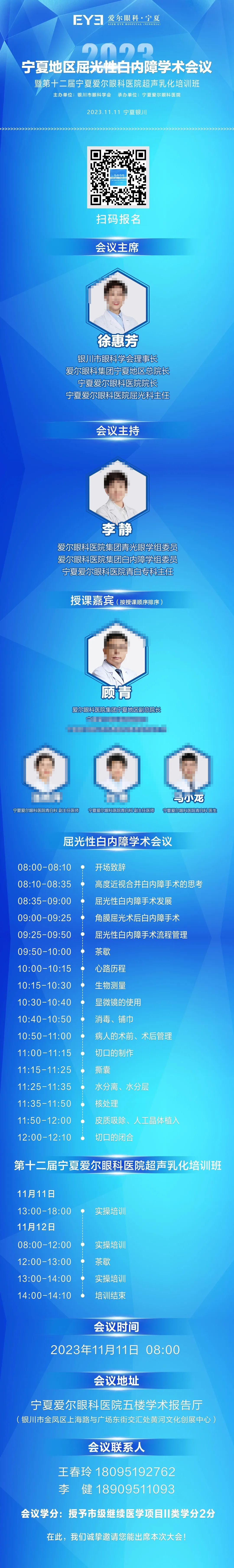 宁夏地区屈光性白内障学术会议暨第十二届宁夏爱尔眼科医院超声乳化培训班,将于2023.11.11在宁夏银川举办。