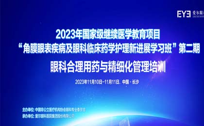 为进一步提升眼科药师专业技能,更好地服务于广大眼病患者,由中国非公立医疗机构协会眼科专业委员会主办,爱尔眼科医院集团股份有限公司承办的2023年国家级继续医学教育项目--角膜眼表疾病及眼科临床药学护理新进展学习班(第二期)“眼科合理用药与精细化管理培训班”于2023年11月9-11日在爱尔眼科医院集团总部(长沙)成功举办。