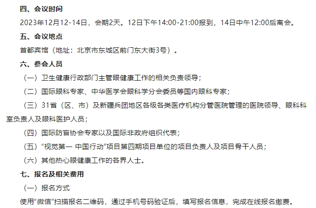为贯彻落实《“十四五”全国眼健康规划(2021-2025年)》,推动眼健康事业高质量发展,实现普遍的眼健康。经研究,我单位决定于12月12-14日在北京组织召开“2023第七届中国眼健康大会”。现将有关事项通知如下: