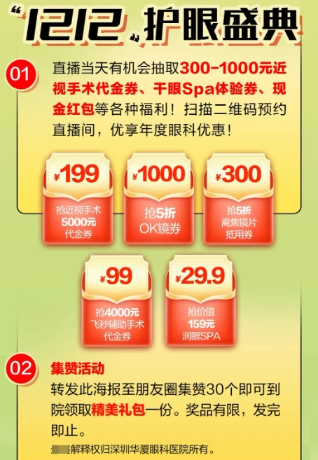 深圳华厦双12狂欢护眼盛典 抽取300-1000元近视手术代金券