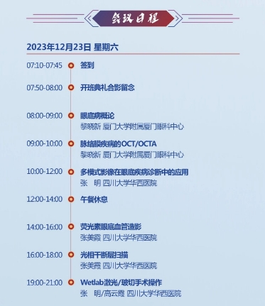 国家级继续医学教育项目“[项目编号:2023-07-02-245(国)]:第十届华西眼底病继续医学教育学习班”将于2023年12月23-28日在四川省成都市世代锦江酒店举办。