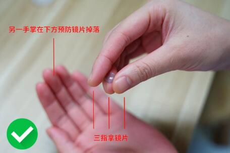 摘戴、护理时身体紧贴桌面,并在桌面上铺上软毛巾,这样即使镜片掉落,也大概率会掉在桌上,很容易找到。