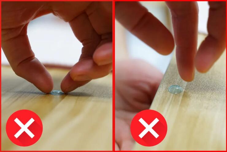直接用手拾取或者用手指在桌上滑推镜片都容易将镜片挤碎。