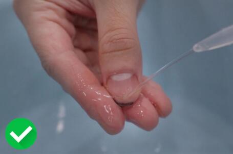 过长的指甲可能将OK镜刮花、划裂,所以在护理镜片前,请先将指甲修短磨平。