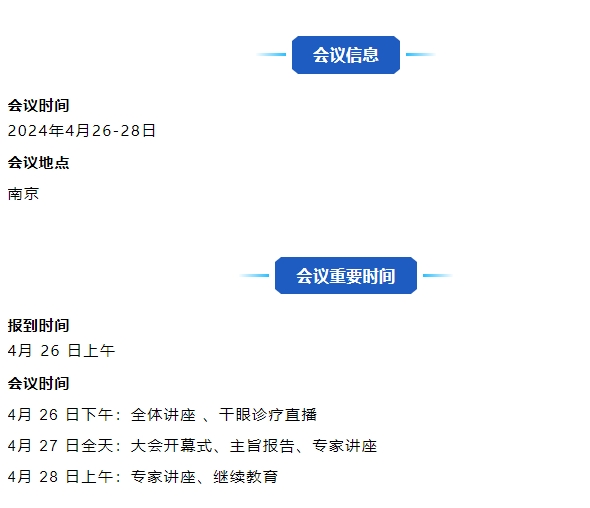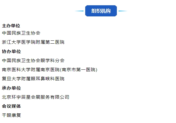 由中国民族卫生协会、浙江大学医学院附属第二医院主办,中国民族卫生协会眼学科分会、南京市第一医院、复旦大学附属眼耳鼻喉科医院协办的2024中国干眼康复学术年会&第七届干眼西湖论坛&国家级干眼诊疗中心规范化建设培训将于2024年4月26-28日在六朝古都南京召开。