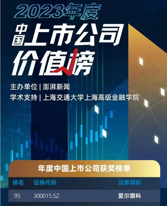 爱尔眼科荣登“2023年度中国上市公司价值榜”
