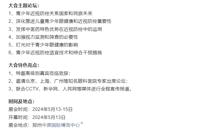 2024中国近视防控产品交流会将于5月13-15日在郑州举办