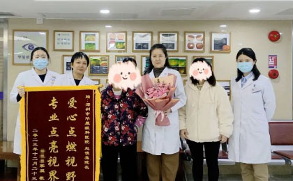 另外,还有苏女士,因为老年核性白内障的问题,她从西安来到深圳华厦眼科医院,在眼底病科副主任朱远飞主任的门诊下接受了手术。朱主任的手术效果让苏女士和家属非常满意,她们特意带来了两面锦旗,以此表达对赵铁英院长和朱主任的感激之情。
