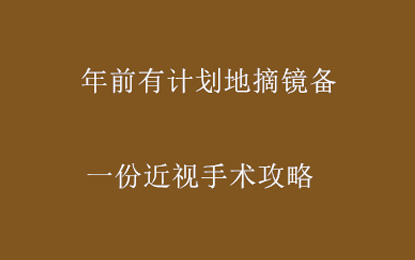 盼望着,盼望着,过年的脚步声已经非常近了。你是否想要彻底告别眼镜的束缚,迎接“睛”彩视界?有不少工作的朋友们平时上班忙碌,想在春节前摘镜,趁着过年放假期间好好恢复。为了让大家能够有计划地摘镜,准备了一份近视手术攻略,码住!