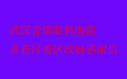 武汉普瑞眼科医院喜获区委区政府感谢信