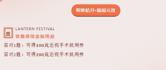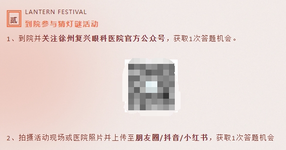 喜乐迎春朝,睛彩闹元宵。为回馈广大患者朋友,让大家在知识的海洋里感受风俗魅力。值此元宵佳节即将到来之际,徐州复兴眼科医院屈光中心推出“明眸皓月·禧闹元宵”活动,猜灯谜、享“睛”彩、赢好礼!