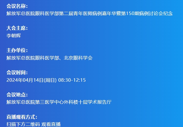 愿积跬步致千里,志积小流成江海。三年多来,学部病例讨论从零到百,从百到一百五十,不仅是传统更是传承,不仅是成才新赛道更是育才加速器。值此我们即将迎来解放军总医院眼科医学部第二届青年医师病例嘉年华,盛邀您与我们一起赴约这场朝气蓬勃的学术盛宴,一起见证这场属于青年人的闪烁时刻,一起瞩目我们共同的学部时间。