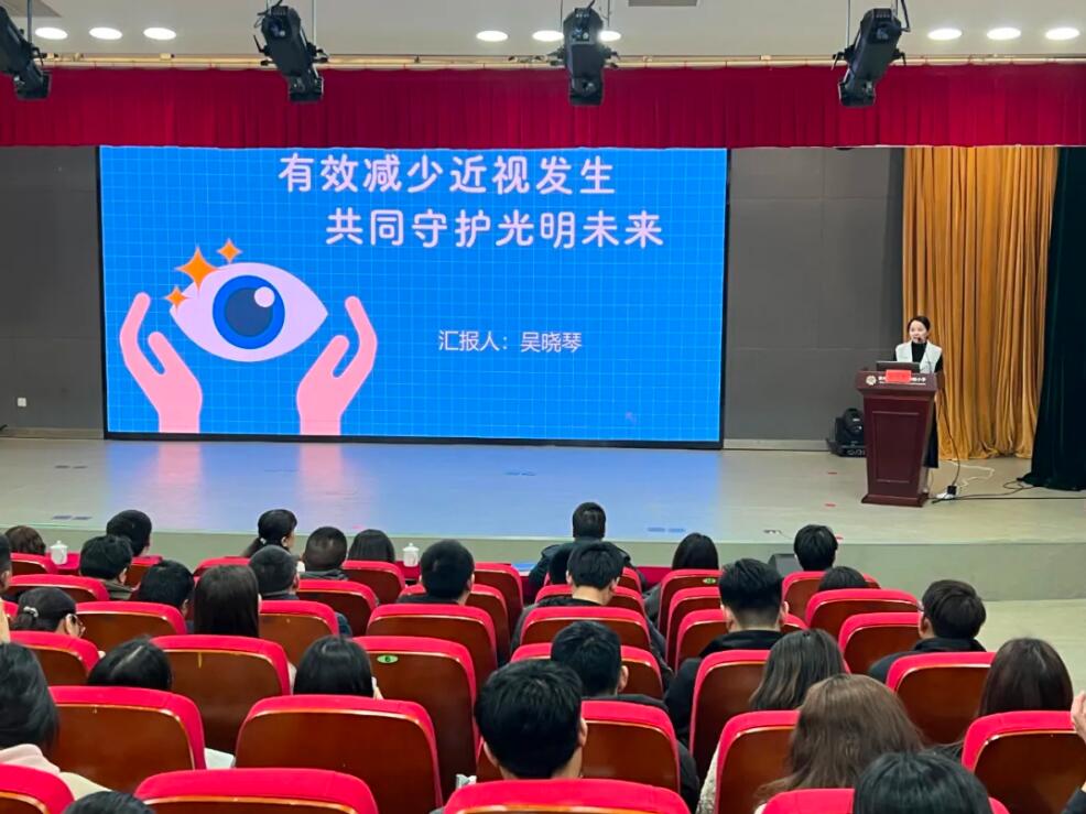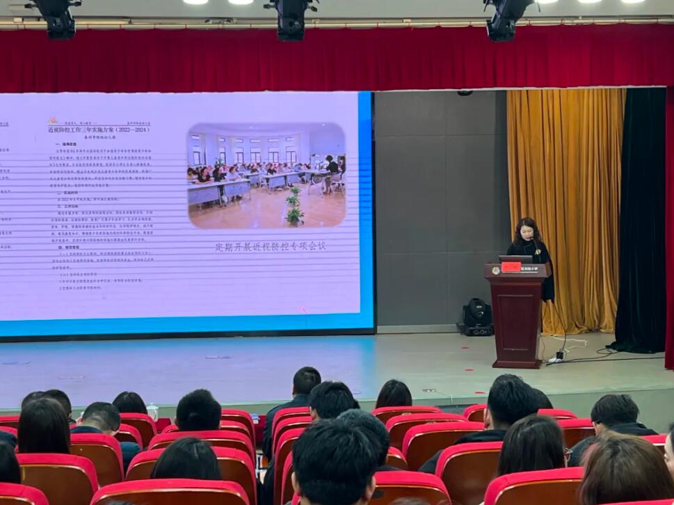 区中小学生近视防控基地吴晓琴总结2023年近视防控特色工作,分析我区近视防控现状,提出合理解决方案,并对2024年近视防控重点工作作讲解。