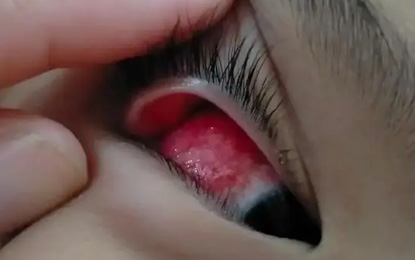“红眼病”病程一般少于3周,可表现为单眼或双眼的异物感、烧灼感、瘙痒、眼部分泌物增多等症状,重要体征包括眼睛红肿、结膜充血、畏光流泪、伪膜、乳头增生、滤泡形成等。
