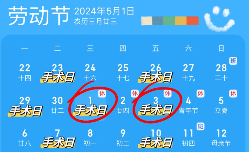 五一期间手术日安排